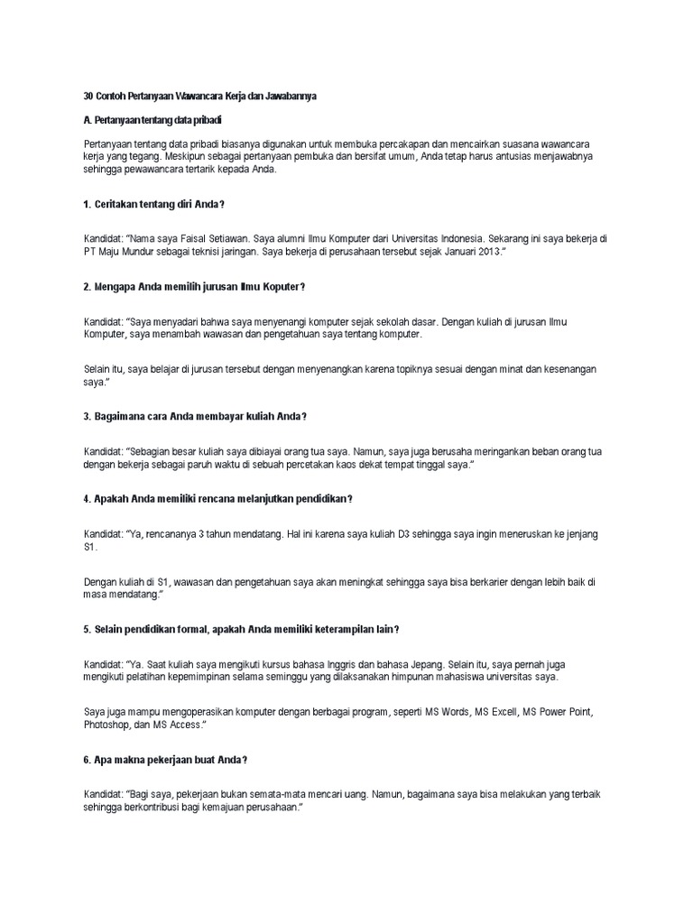 30 Contoh Pertanyaan Wawancara Kerja Dan Jawabannya Pdf
