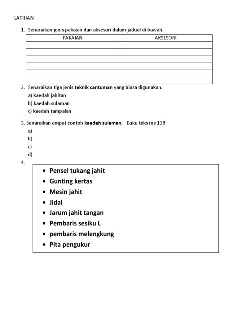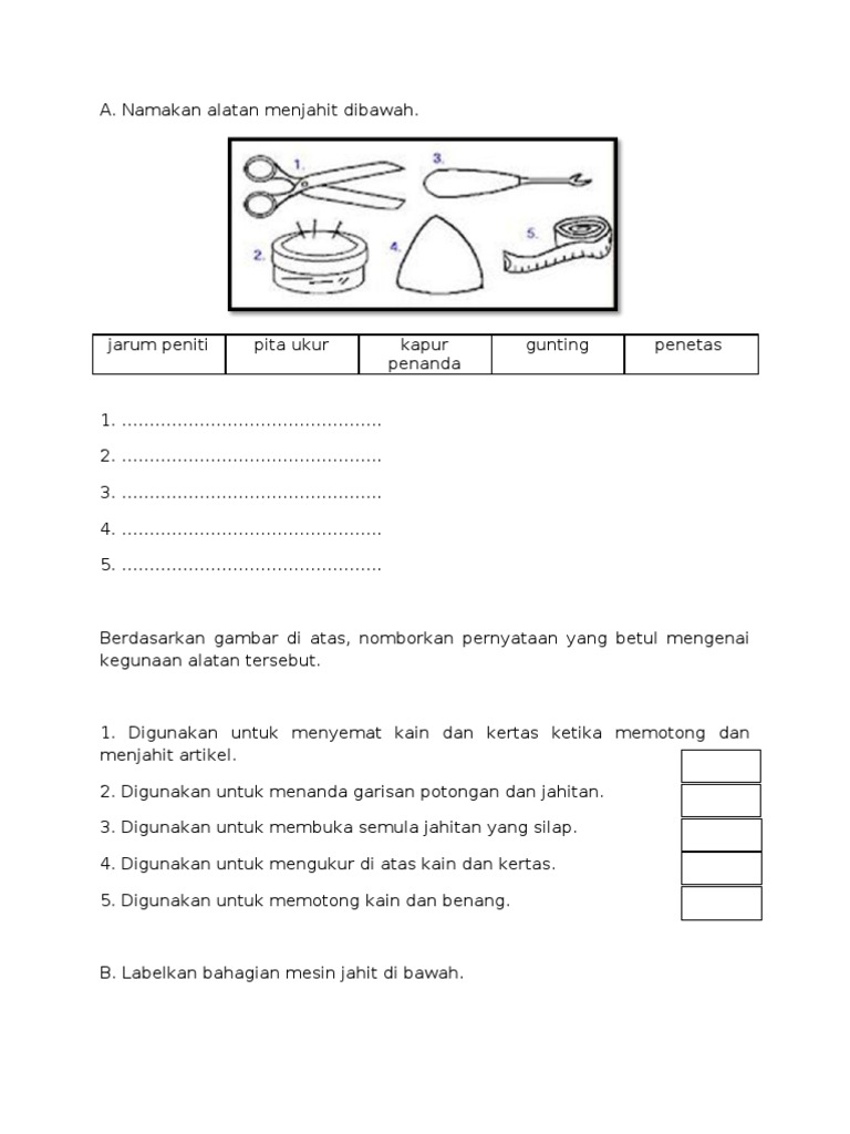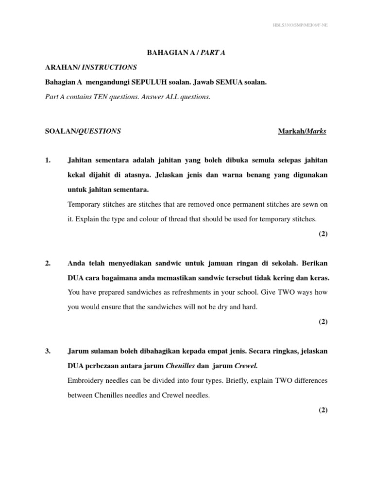 Contoh Soalan Kemahiran Hidup Jahitan Terengganu P